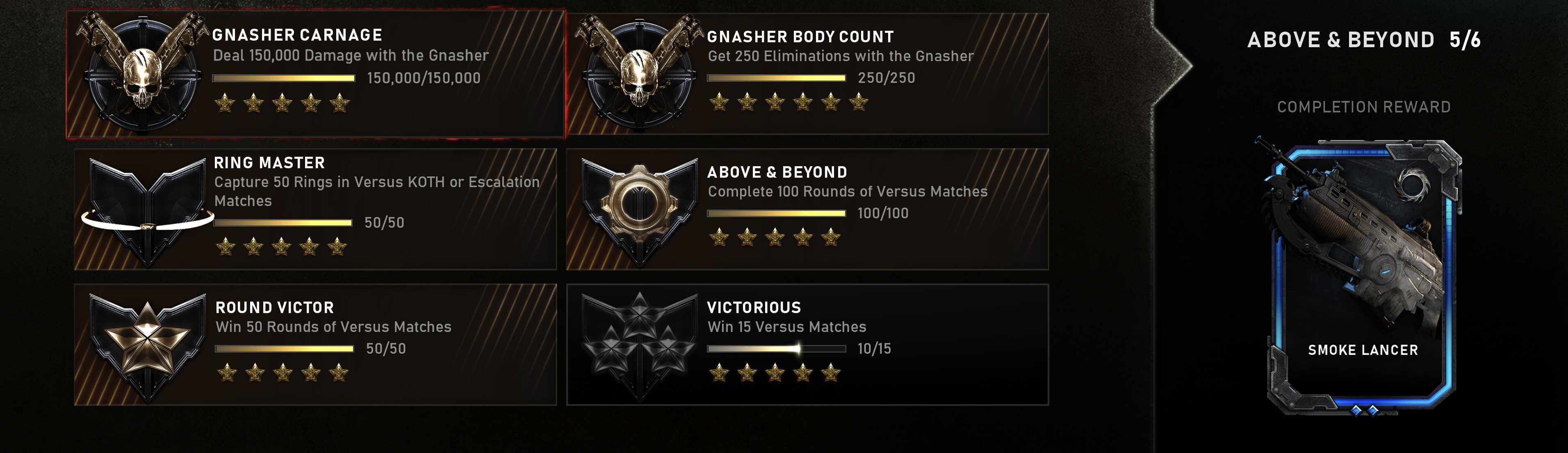 Either the issue was fixed or it was only visually and the game still had the information that I had completed the Victorious medal saved, but I have completed the “Above & Beyond” medal(complete 100 Versus rounds) today and despite the fact that the medal group shows I have only done 5/6, it appears to have correctly awarded me the Smoke skins anyway(and I almost mistyped Smoke as Snoke, which is an entirely different thing to begin with). Screenshots to support evidence :