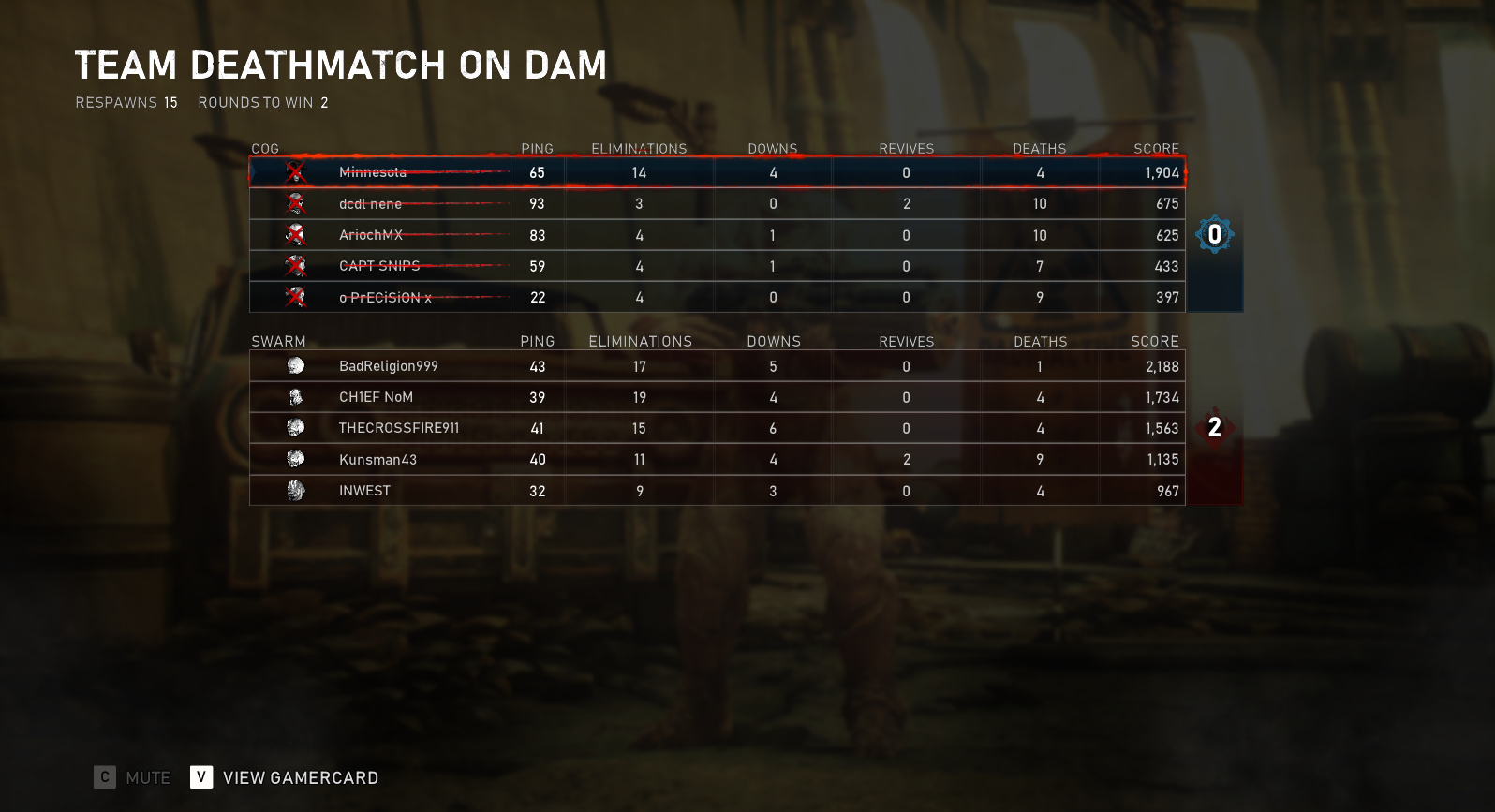 I mean for god’s sake, the top player on the opposition had almost the same score as the 4 bottom players combined on the cog team. Explain how that was a fair match.