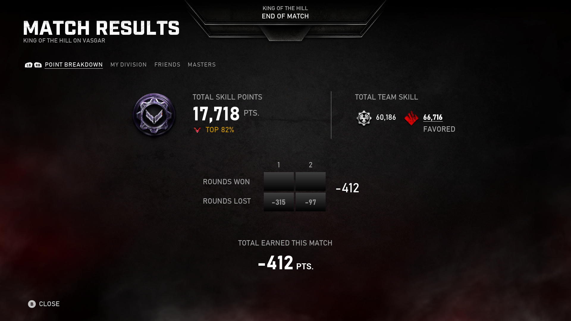 Yeah this is one of the worst ranking systems in any game Iāve ever seen. I donāt think the update fixed anything. Was a diamond king player in 4 almost every season. Just played four straight king games and Iām at a silver three. Finished 1st or second in points in the entire lobby every game. Got between -100 to -150 in losses. Then when I finally win one because I get competent teammates, 2-0, and finish with 2500 more points than anyone on my team I go up by 40 rank points. So frustrating. Honestly have been forced to play other games, which I never do, out of pure frustration.