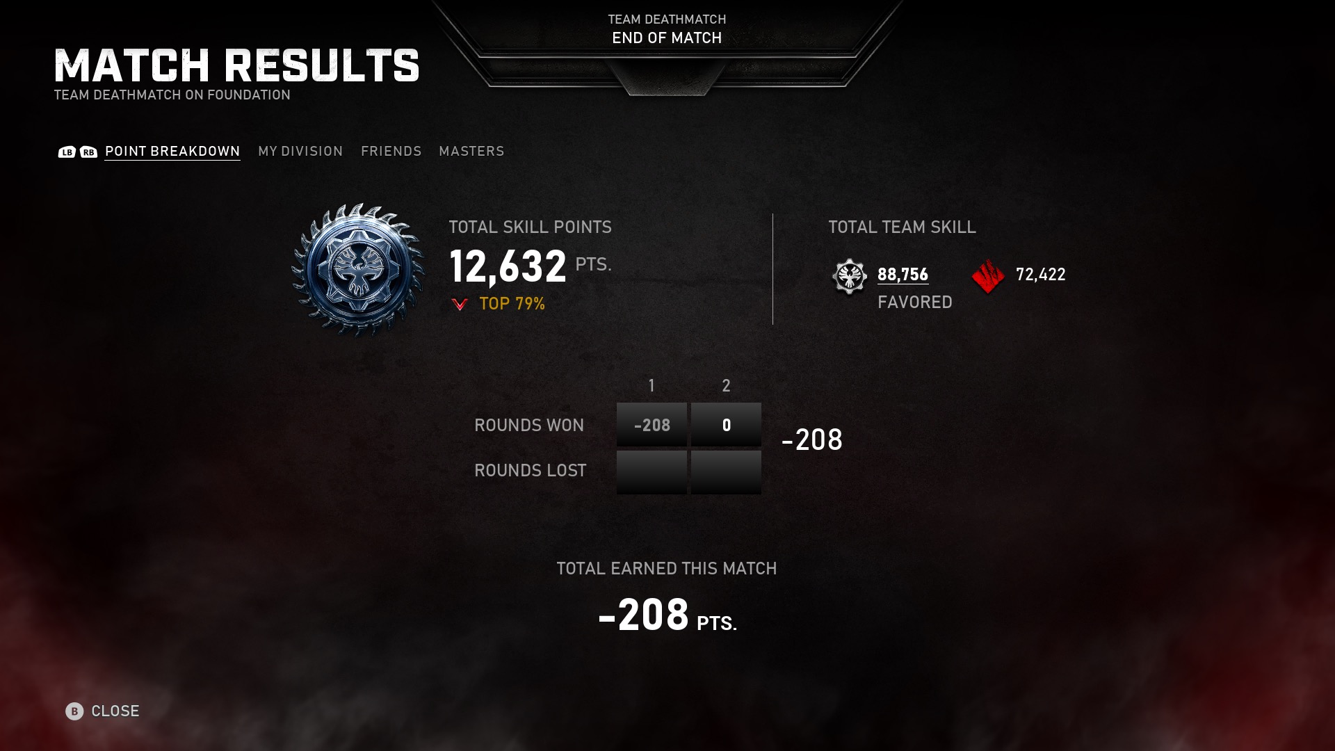 I posted pics earlier where I won two rounds, did virtually the same in terms of eliminations, caps, breaks, etc in each round, and got 4 times as many points in the first round as in the second round.