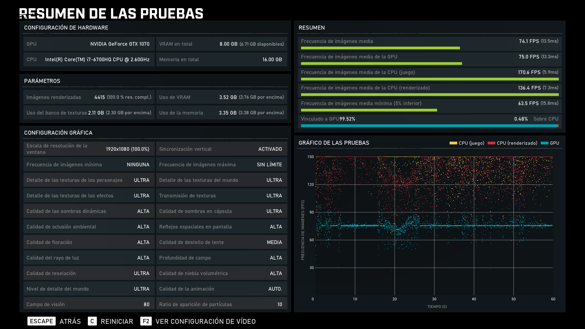 If you scroll a bit further back and look at my earlier post my benchmark looked very similar to yours with the frame rates being all over the place which ruined gameplay. It was the only odd benchmark around because most benchmarks have the fps (blue dots) tightly packed.