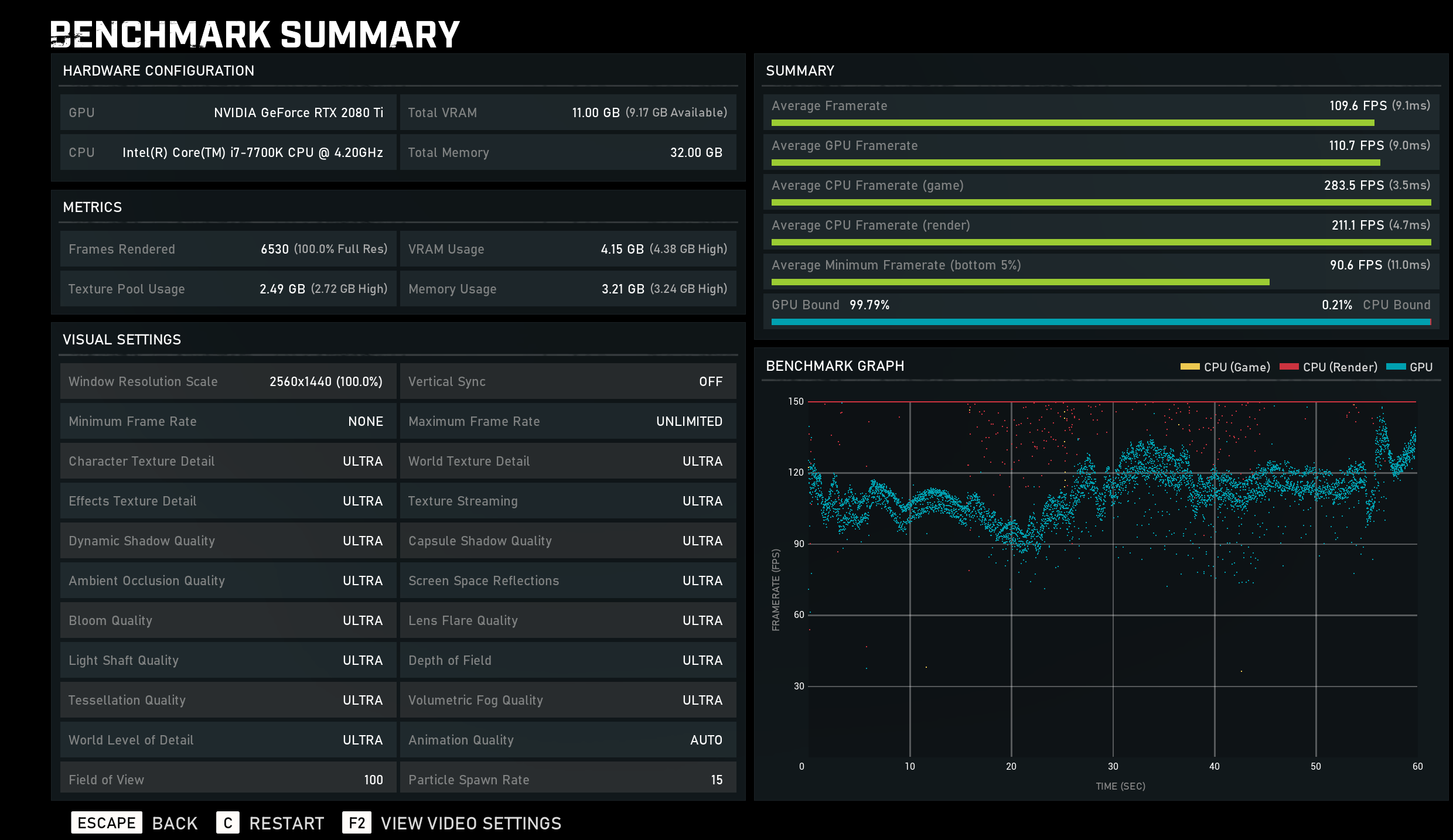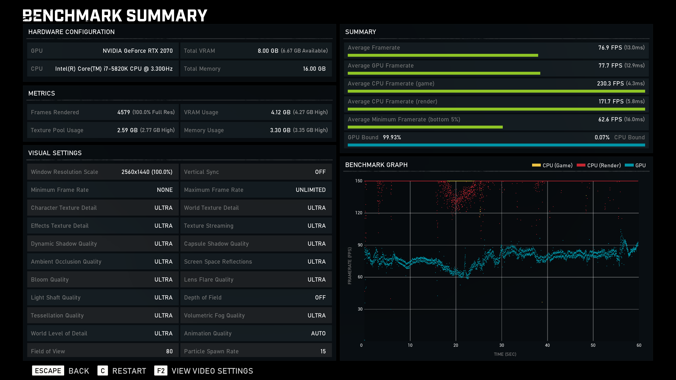 ok scratch the last post, here is a retest using 436.30 drivers to be consistent with everyone else. I have now done the test on full Ultra (Recommended settings)