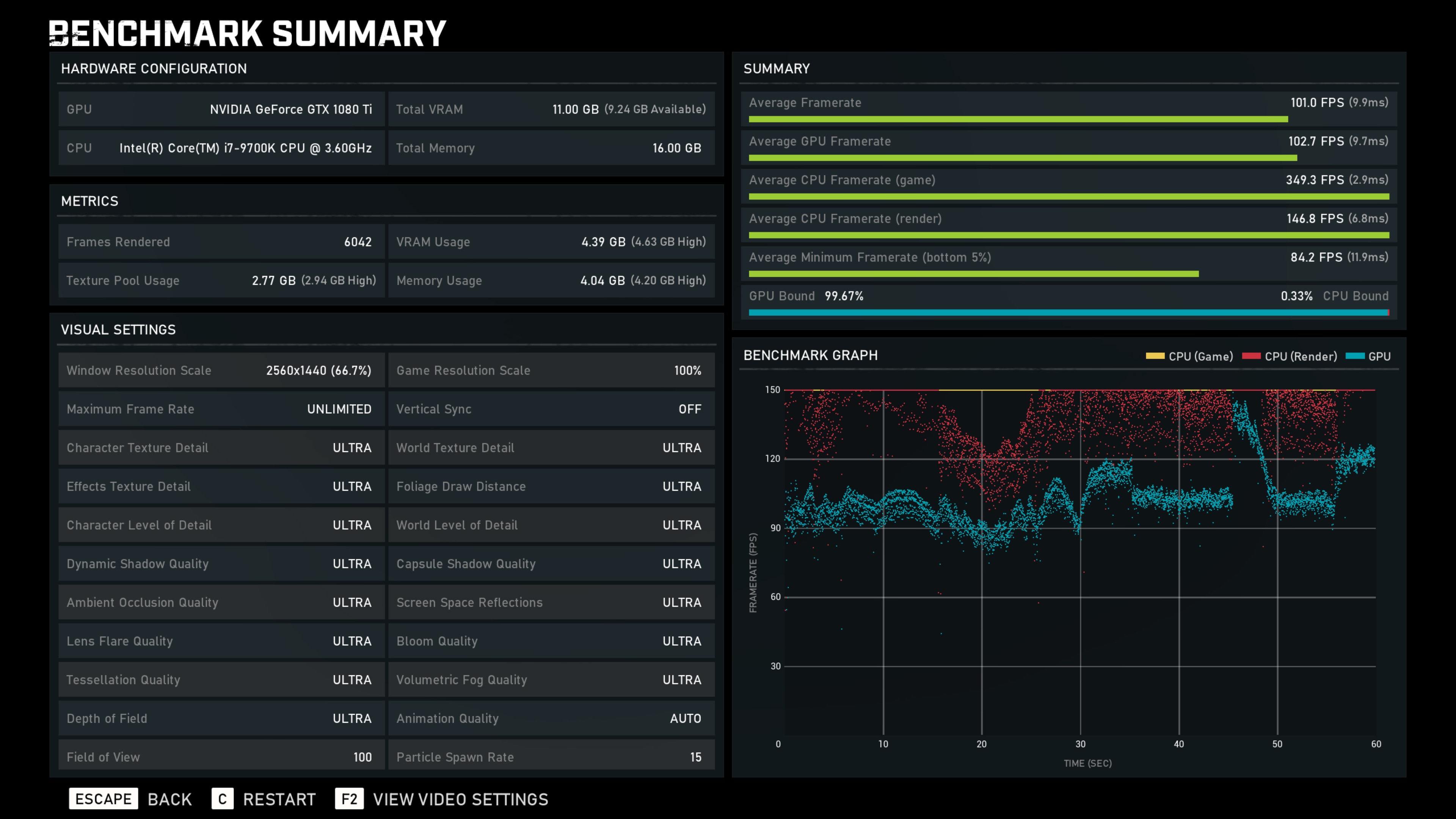I mean i might have to play with FOV/Depth of Field settings. There is a lot of background detail, but still those are ridiculous dips. Even during the benchmark i posted in 1080 there is a cpu dip down into 50 fps. I dunno that benchmark is only 80 FOV and Medium Depth of Field.