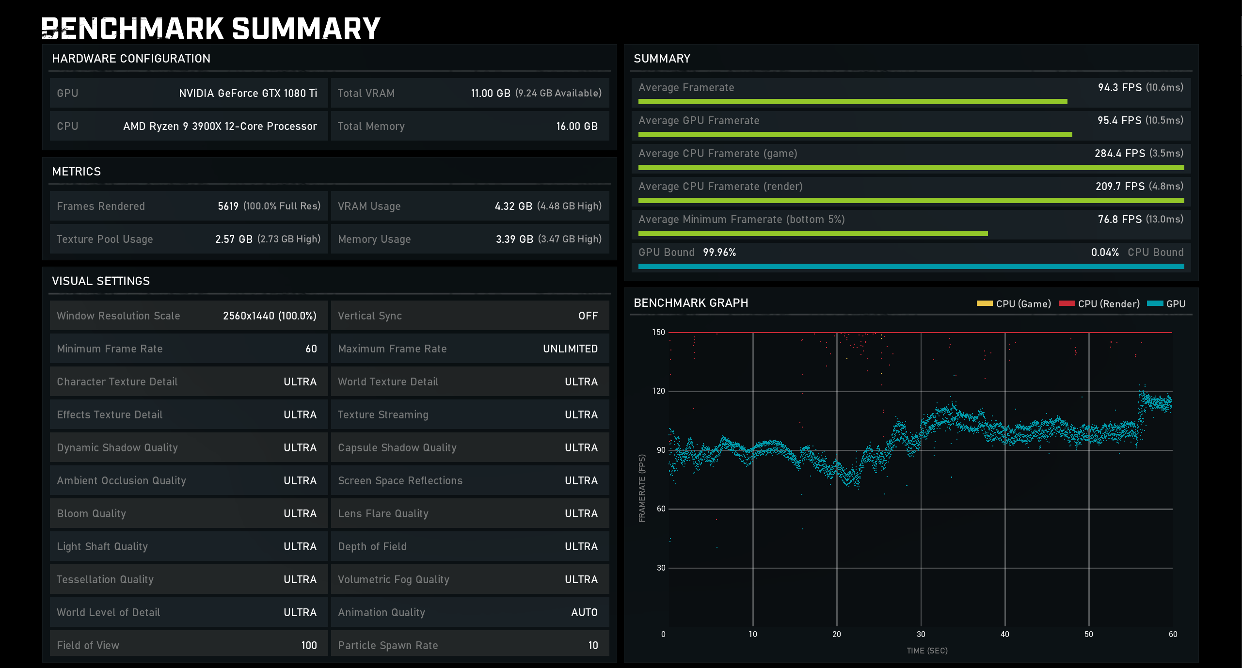 I don’t think it was that. In 1080 it was above 110 in the benchmarks, ultra options. In 4k, high graphics and 50fps ultratextures.