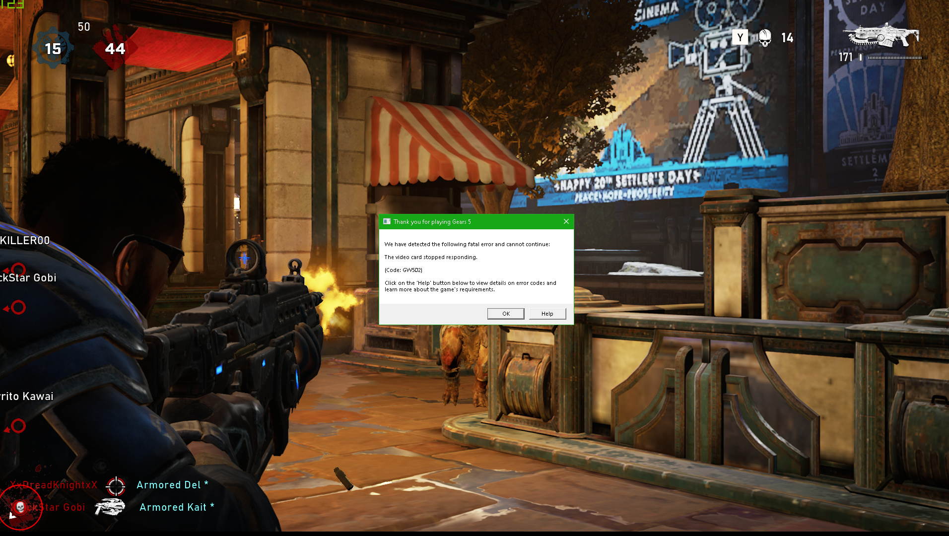 2 .Match making is slow as leap yr! - Error cod GW502 : The video card has stopped working? Screen shot of this will be attached. Game freezes with this issue.