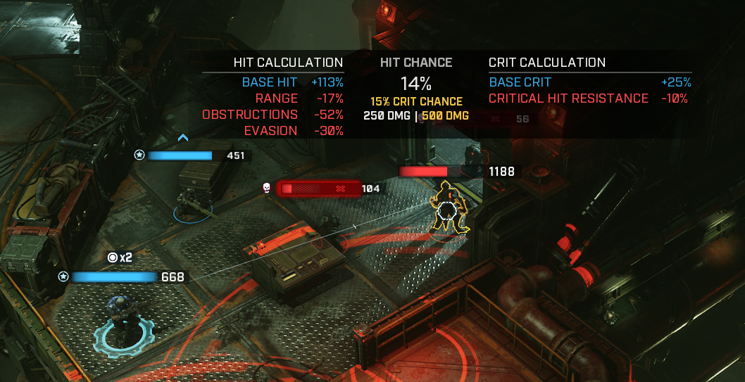 At times it works the other way around: an 87% chance only to miss 3 hits in a row with the sniper. Other times a pixel is the difference between 87% and 14%.