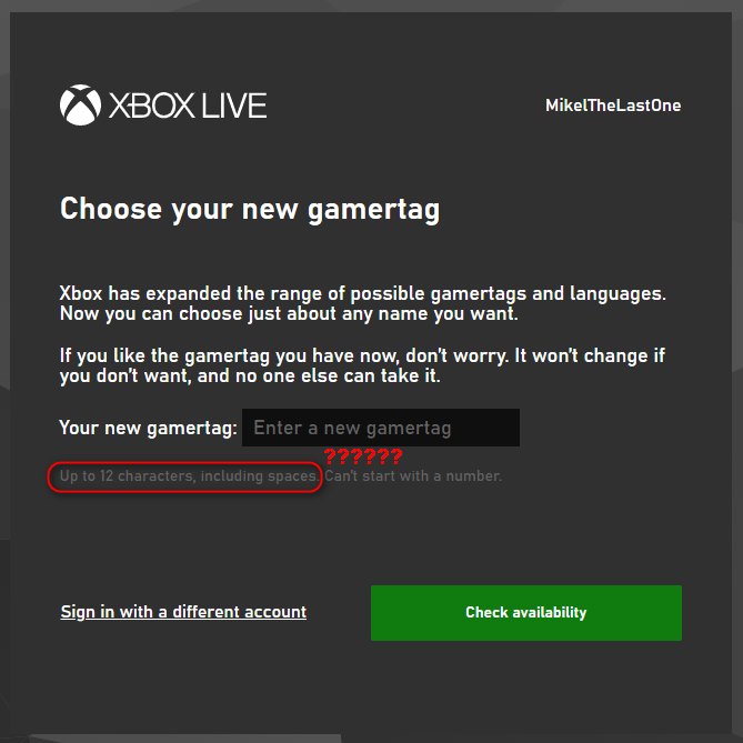 I just wanted to change my name into “ForbiddenForester”… But appearantly it is too long for XBOX…