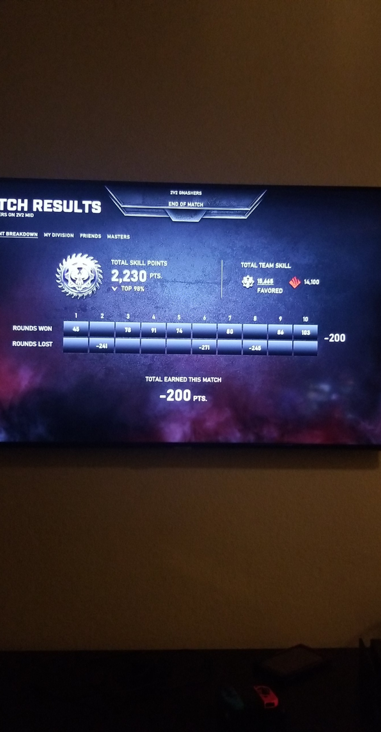I went to play 2v2 with a friend first game we won I got first on my team and the enemy got mvp by 200 points. The enemy team was favored double my team and I ended up losing 400 points. He next game I played I got mvp won they were favored and I still lost points