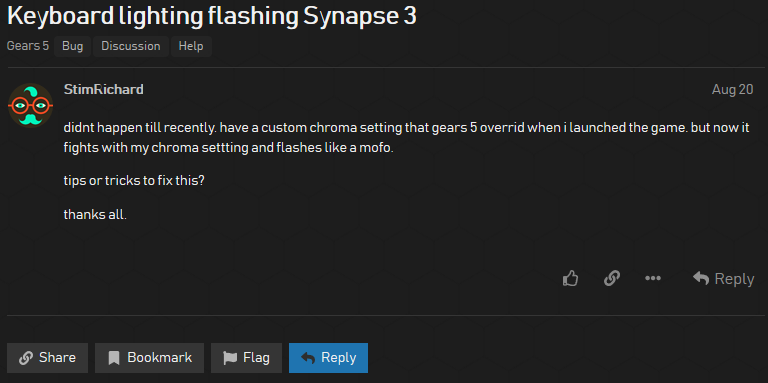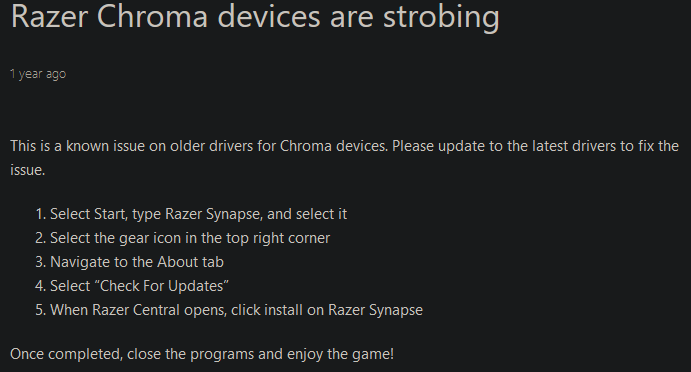 EDIT: I should note that, strangely, when closing out of Razer Synapse, some of the Razer elements work. Dying, for example, makes the keyboard glow red. All the intractable buttons on the keyboard glow like 1, 2, 3, 4, tab, esc, etc. I don’t know how this is possible as I click close ALL apps for Razer, and somehow it still works.