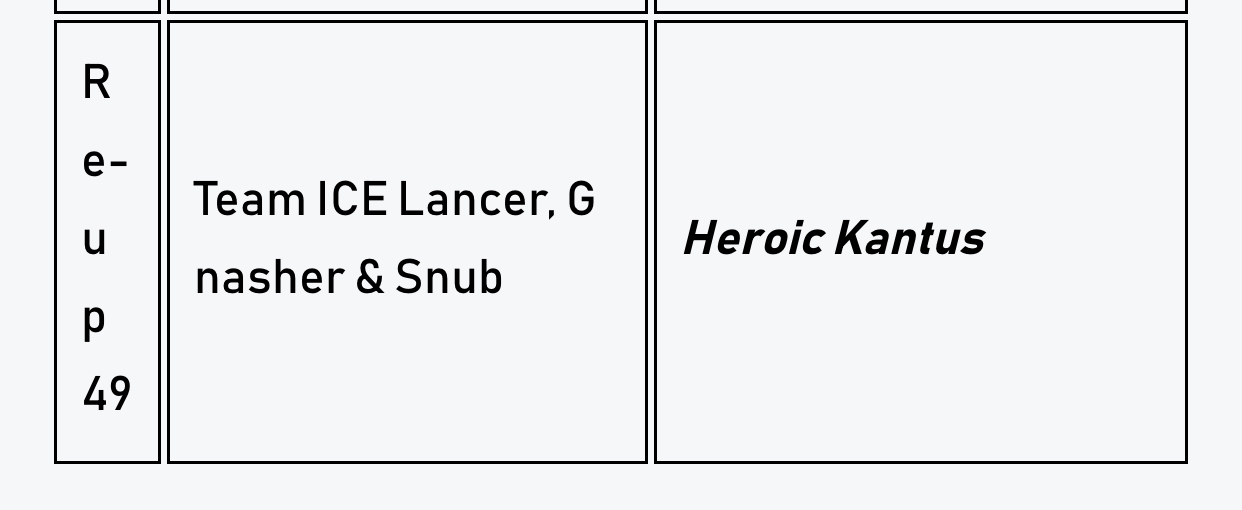 Yeah…the table I saw said re-up 25 team ice gnasher.