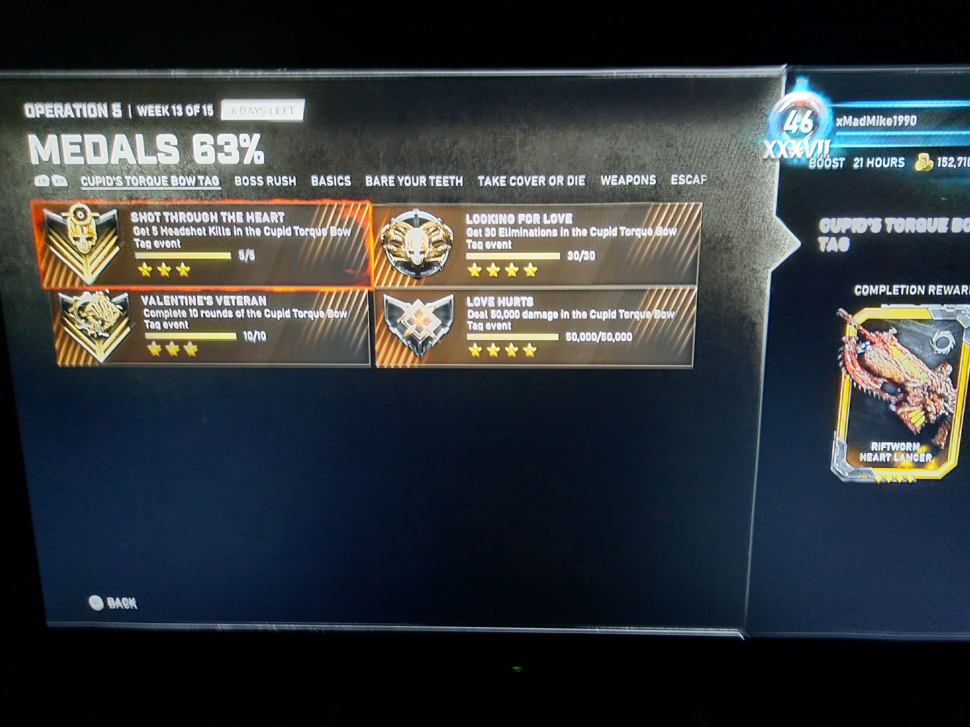 I’ve completed Cupid Torque Bow Tag Medals and didn’t get Riftworm Heart set either.