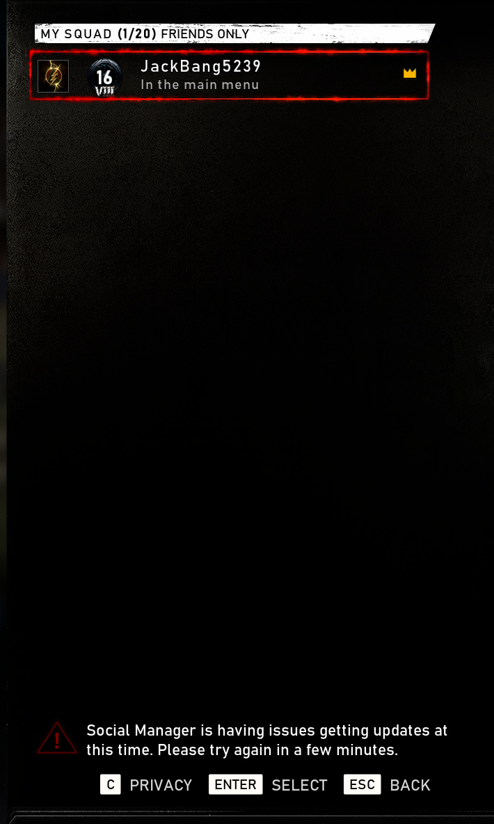 So i updated gears at the start of the week, however when i come to try and play online with my friends, on the social button to invite him, its showing " Social showing social manager is having issues getting updates at this time. please try again in a few minutes"
