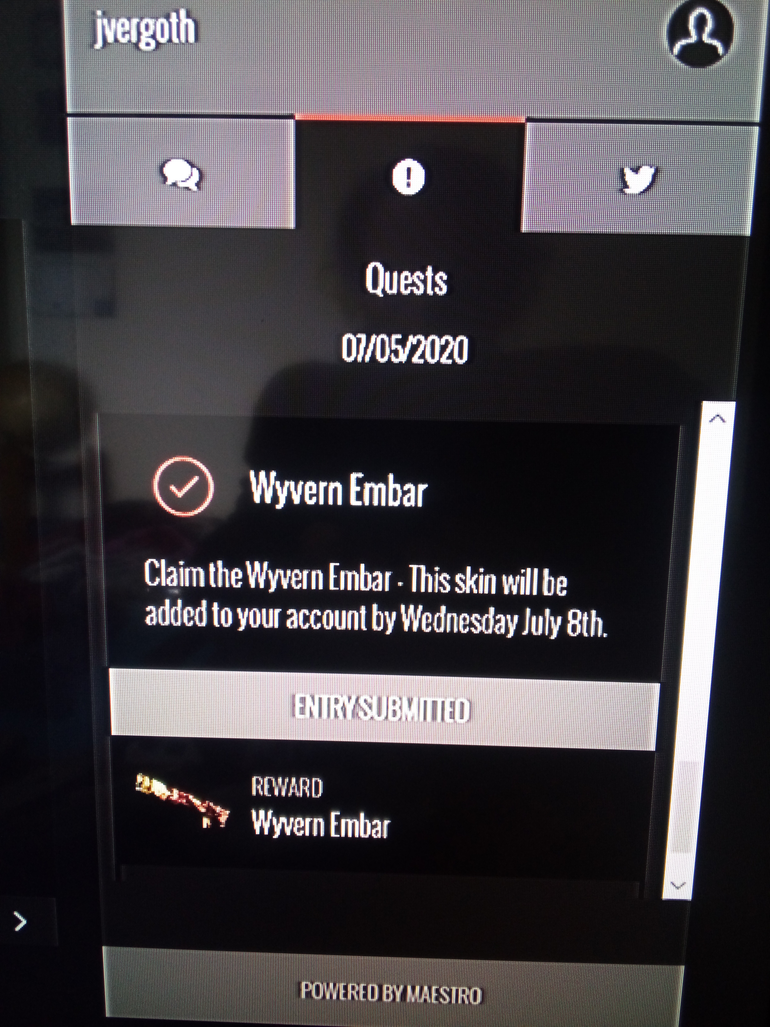 I haven’t received Wyvern Embar or Mace. I’ll give it until tomorrow then raise a ticket.