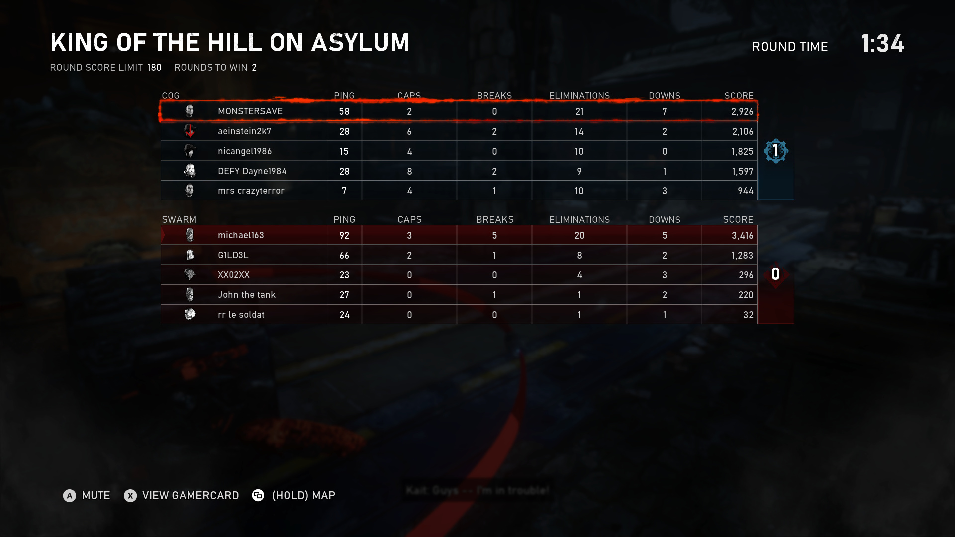 Dont know if you noticed but my gamertag is michael163 and i was the one carrying the swarm team. And yes i will roast my teamates because look at their stats.