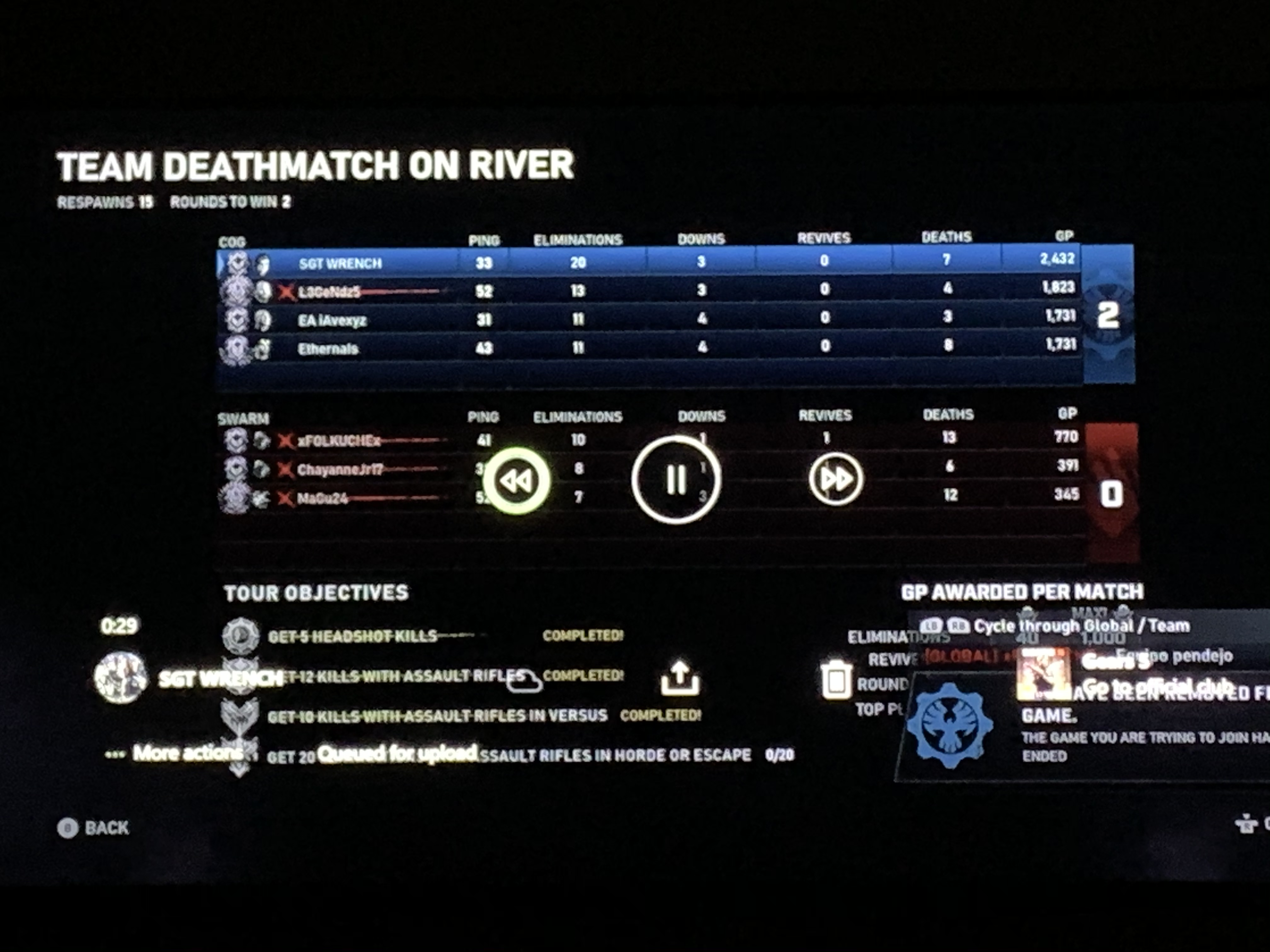 “the game you are trying to join has already ended”