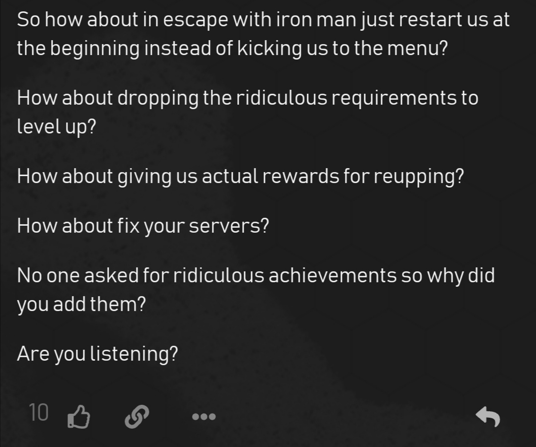 I wasn’t really talking about the ranking system. It’s a broad point about if they are listening then why do they keep doing things no one is asking for and not doing things we are asking for.