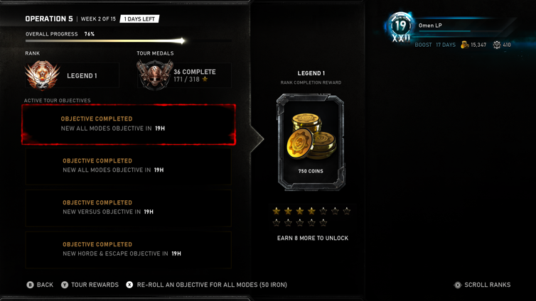 I did spend 10 Iron on a reroll though so that was enough to get my last 4 stars - basically I had previously accidentally spent 10 Iron back in Op 1 so had an awkward amount if Iron left (xx440), and given I can’t really get anything for 40 Iron figured it was okay for me to use it on rerolls.